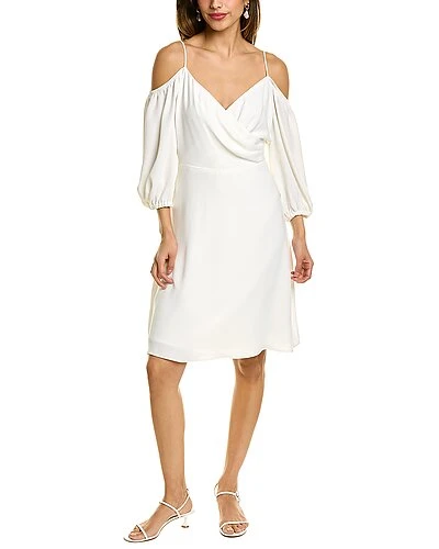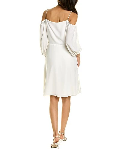- Sonora Sunrise Dress in whitewash with spaghetti straps, surplice neckline and off-the-shoulder 3/4-length puff sleeves