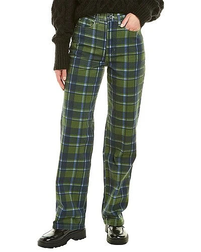 - Dad High-Rise Straight in basil plaid with belt loops, and classic five-pocket styling