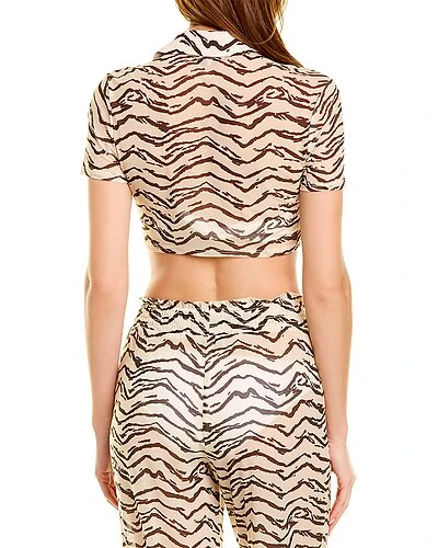 - Tie-Front Top in off white multicolor with mesh design, spread collar and self-tie front